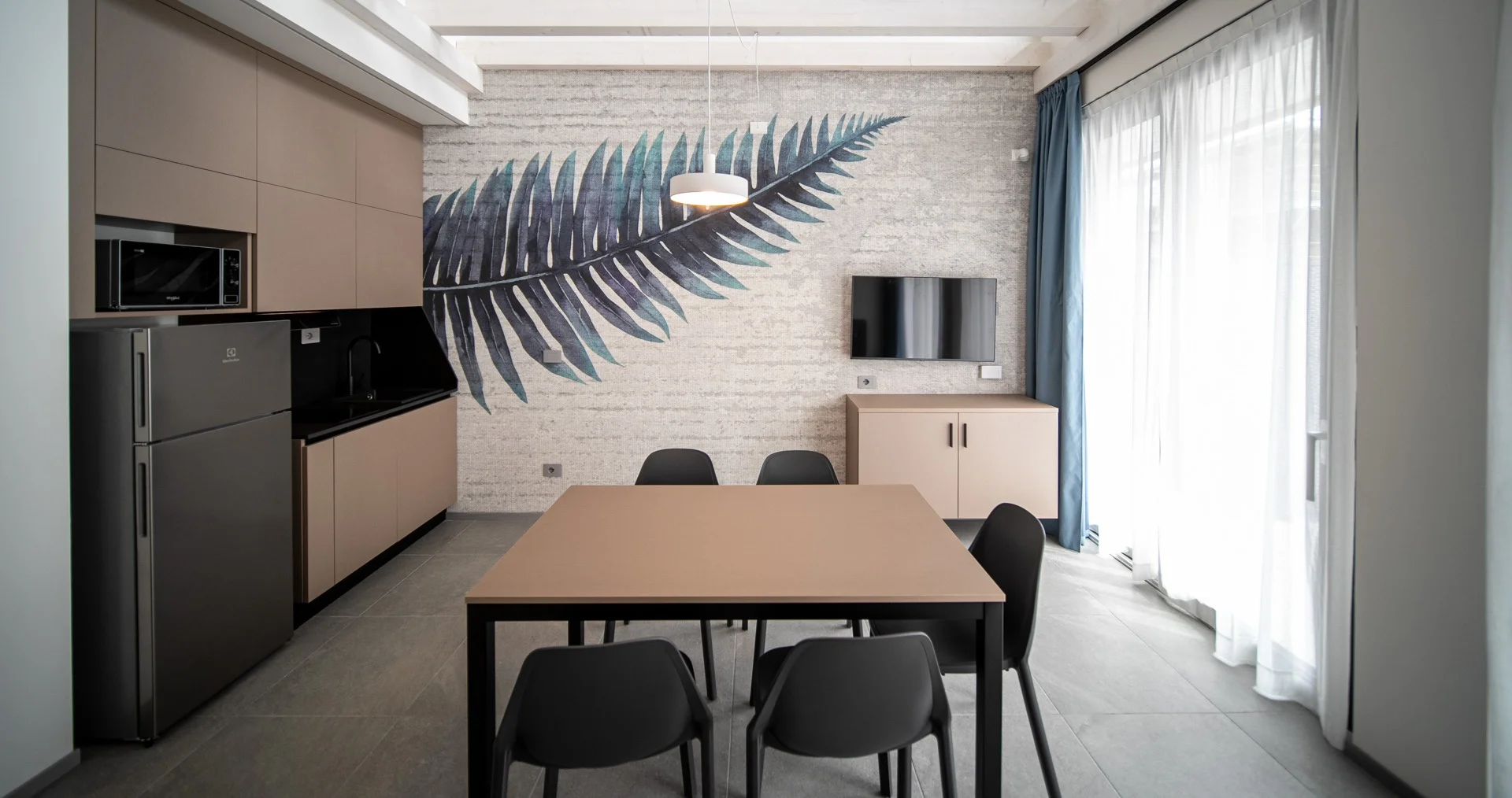 La camera matrimoniale, con letti singoli unibili, è arricchita da un bagno en-suite con doccia emozionale e parete in vetro affacciata sulla zona notte, per un’atmosfera suggestiva e contemporanea. La zona giorno con angolo cottura e divano letto singolo, insieme al secondo bagno, garantisce funzionalità e praticità.